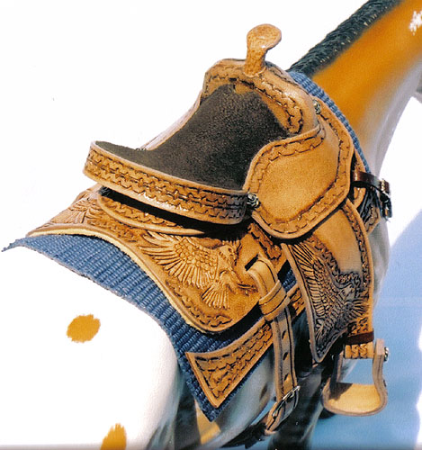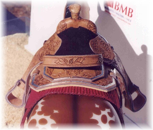 Designed after a real working cowhorse set, this saddle comes with long billets for the working classes, and has interchangable short rear billets (not pictured) for the pleasure classes. |