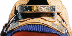 Basketweave tooling, hand-carved feathers, and hand-carved gold and silver plating. |